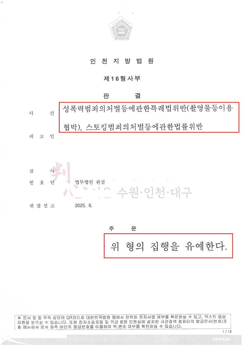 6 | [선고유예] 카메라촬영/반포죄 | 5년 동안 70회의 몰카를 찍은 사건, 선고유예 판결 | admin | 2025.10.21 | 1 |