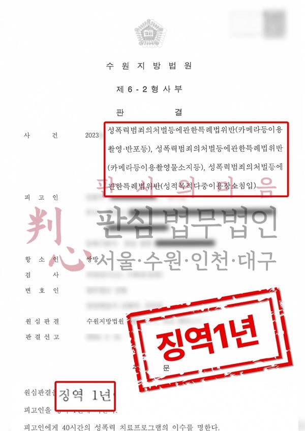 » | [실형선고] 카메라촬영죄 | 몰카 피해자의 피해자진술권 확보한 사건(SBS보도), 실형 1년 선고 | admin | 2025.10.21 | 2 |